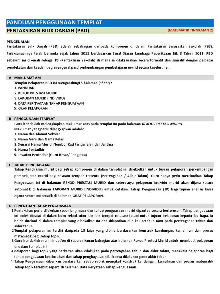 MUAT TURUN PAPAR. Dapatkan file bas yang akan menjalankan proses mencetak secara auto. Himpunan Templat Pelaporan Pentaksiran Bilik Darjah PBD Tingkatan 2 Mohd Suhaimin Isnen.