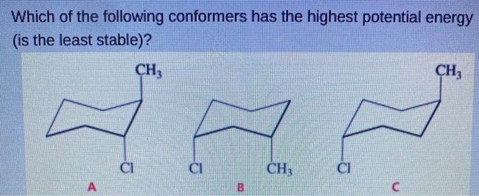 Solved Which Of The Following Conformers Has The Highest Energy Is The Least Stable